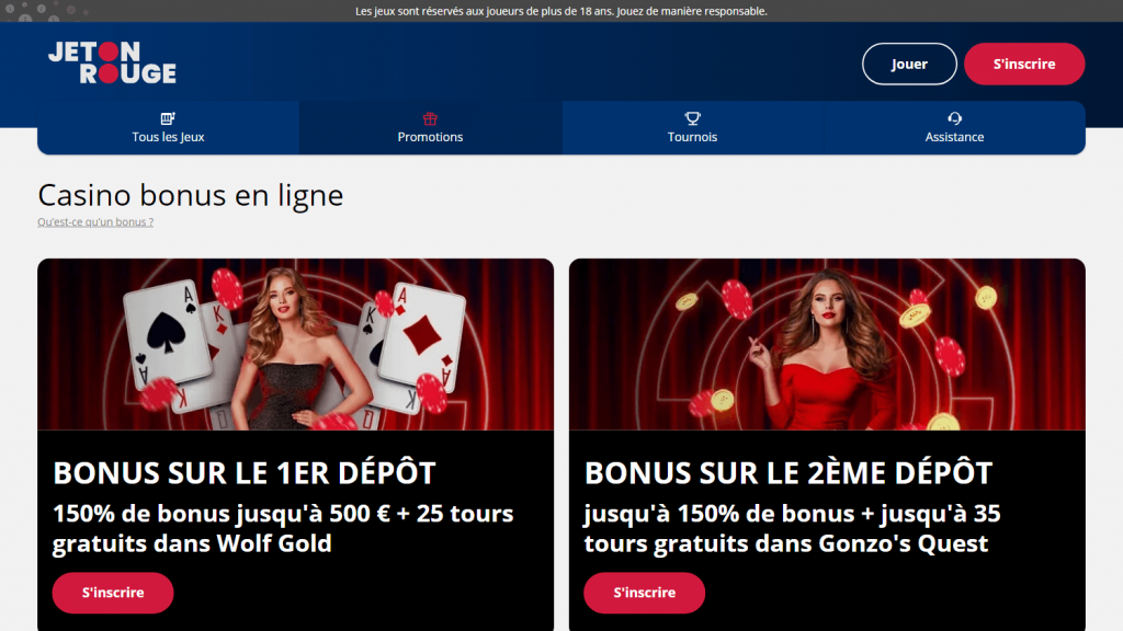 | Jeton Rouge Casino | 150 % jusqu’à 500 € + 100 Tours Gratuits | 9,4 / 10 |